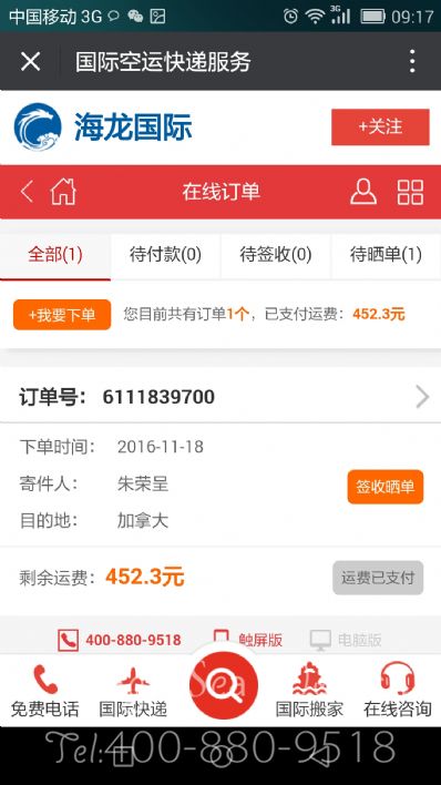 海龙是家不错的国际快递公司,服务态度好,售后服务也非常到位,上门收件方便,速度快捷,费用也比较实惠,以后还会找这家公司邮寄包裹。