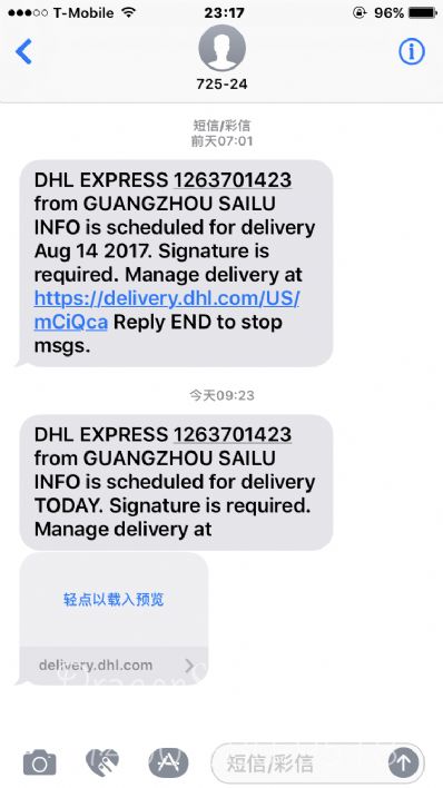 第三次寄了,从成都发往美国的,到广州以后就是dhl直接运过来的,dhl比以前的快而且这个快递公司会发短信提醒,这一点很好。