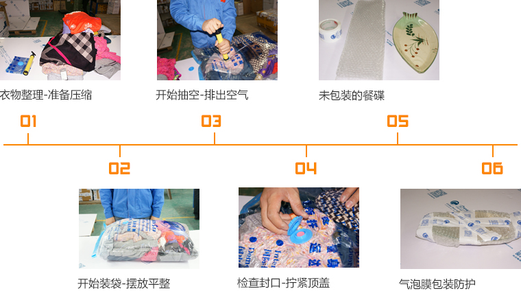 注意:不能有尖刺状物品,以免刺穿真空袋。