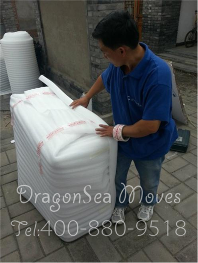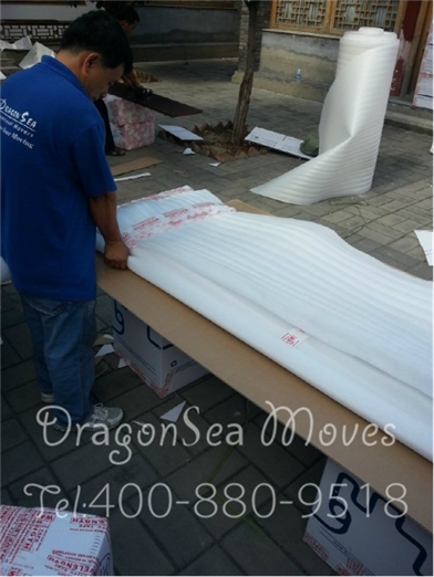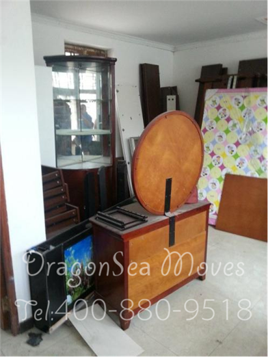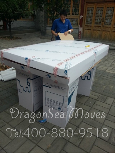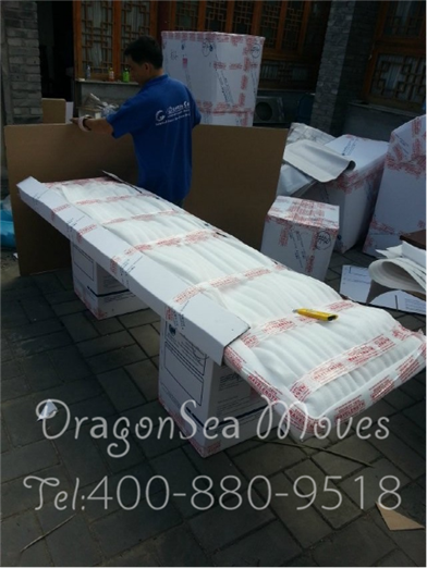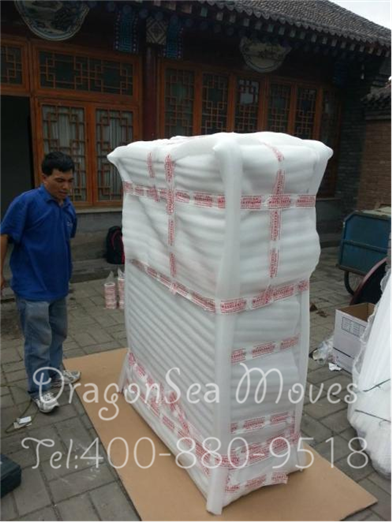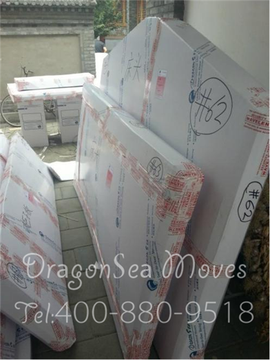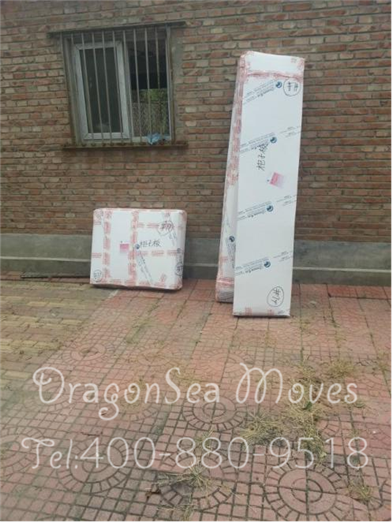 基于客户的隐私,仅拍了包装现场,没有拍四合院全景,下面这些都是包装好靠墙摆放的家具: