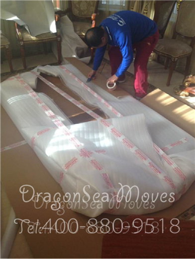 客户家具都比较好,这个步骤是必须要做的,近期看有些公司的包装案例,第一层是用PE膜包裹的,这种包装实际上是不合格的,PE膜高温情况下容易粘连家具,导致漆面损坏。