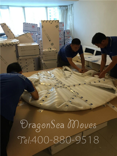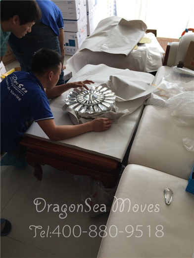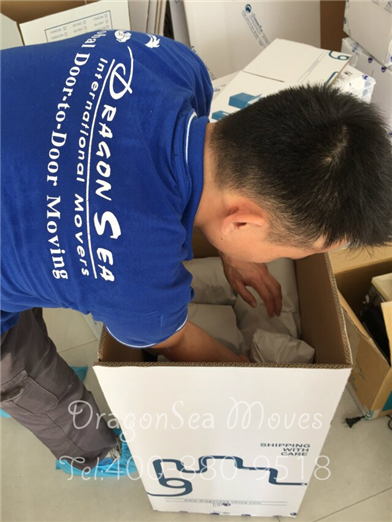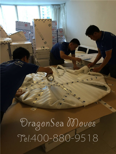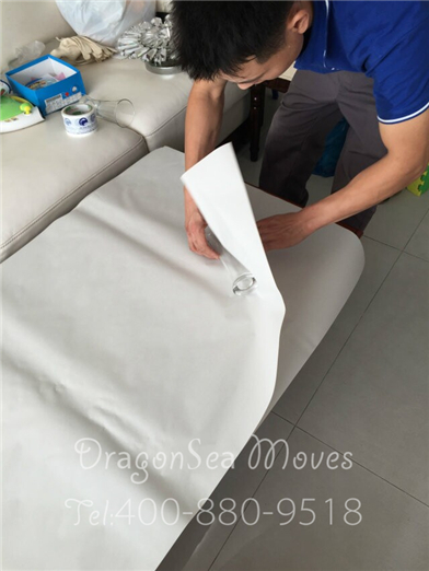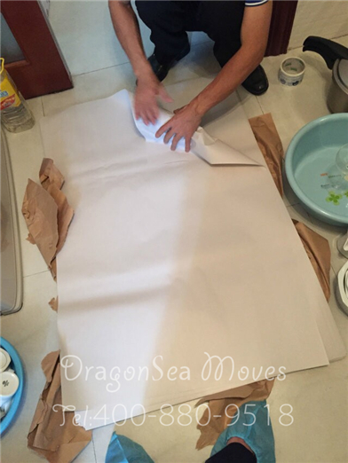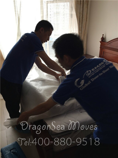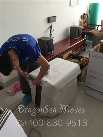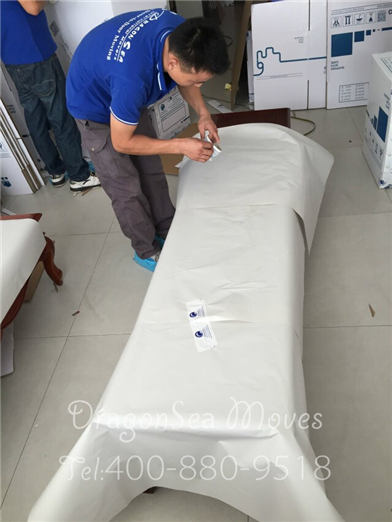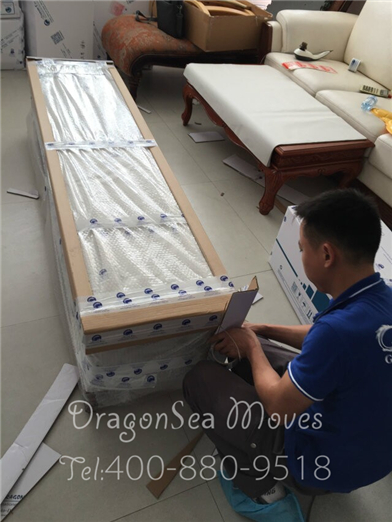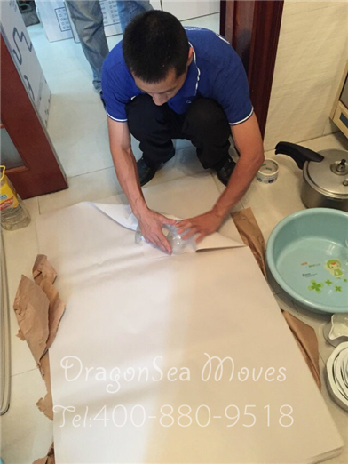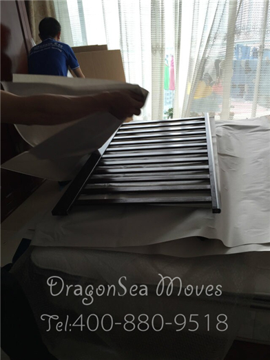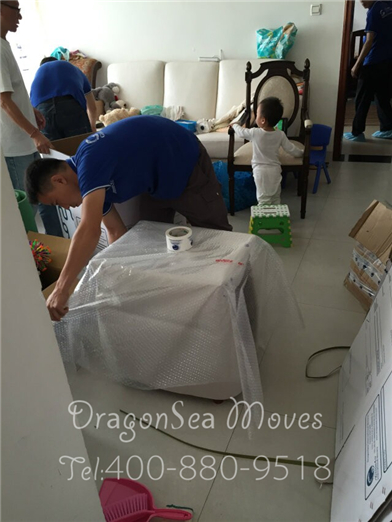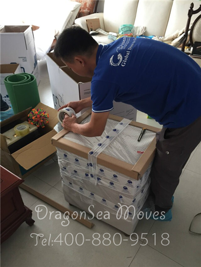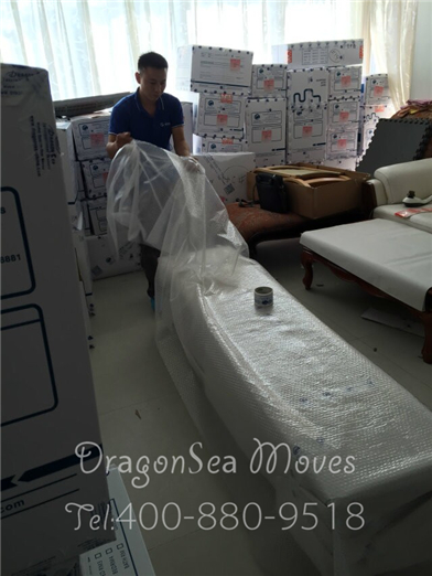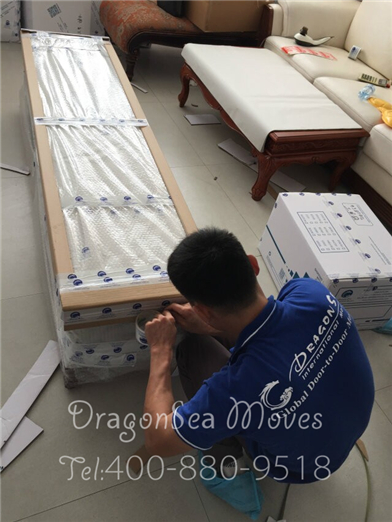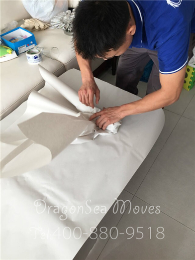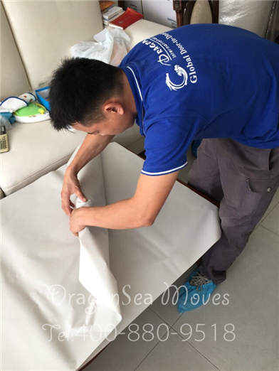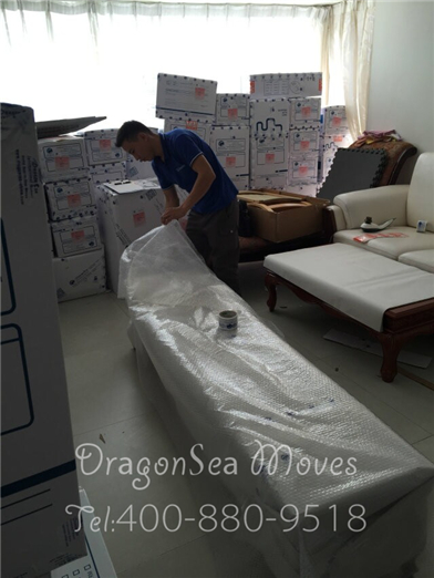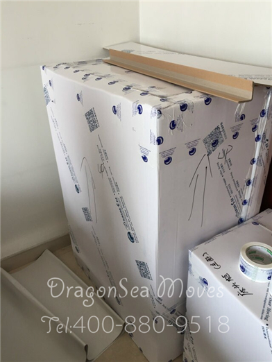 包装完毕的小件物品,整齐摆放在室内一侧,准备开始包装大件物品