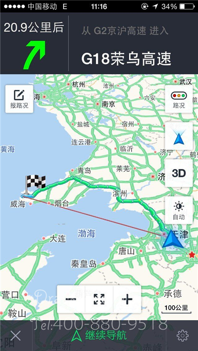 赶路,看导航就知道有多远,北京到山东威海横跨了半个渤海湾......