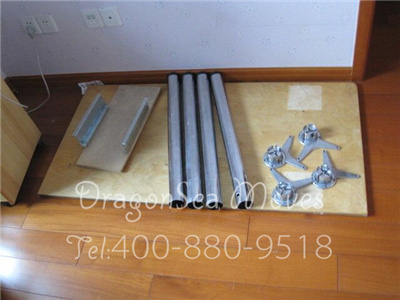 拆卸好的家具配件,全部摆放在地毯上,待包装