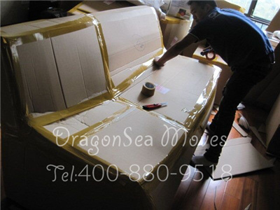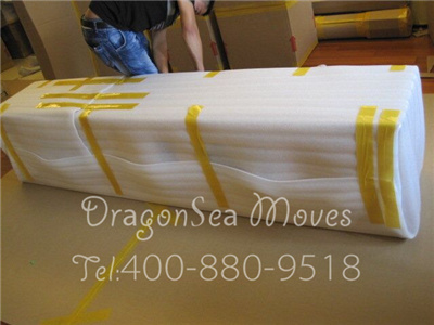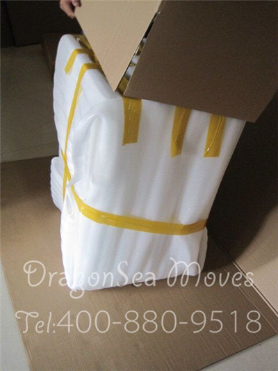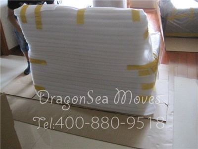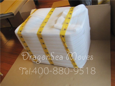 沙发包装,用珍珠棉缠绕防震处理