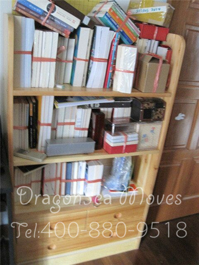 这是客户的书柜,部分书籍已经用绑扎带分类绑好了,这样搬家后书籍不会乱,可见客户是一个很细心的人