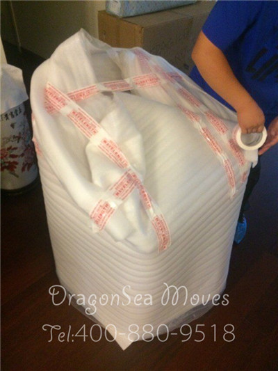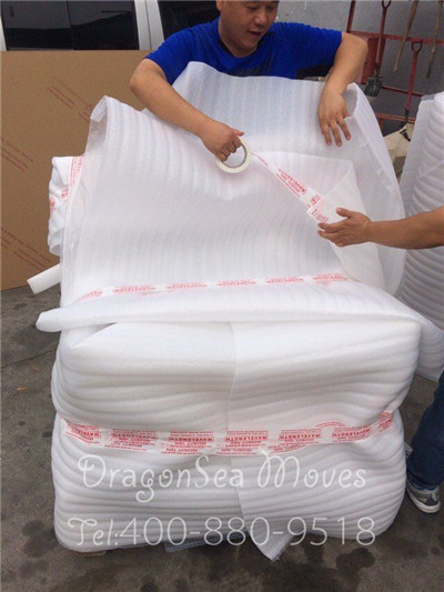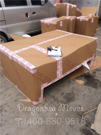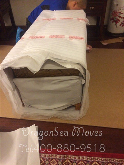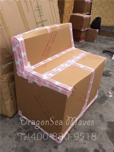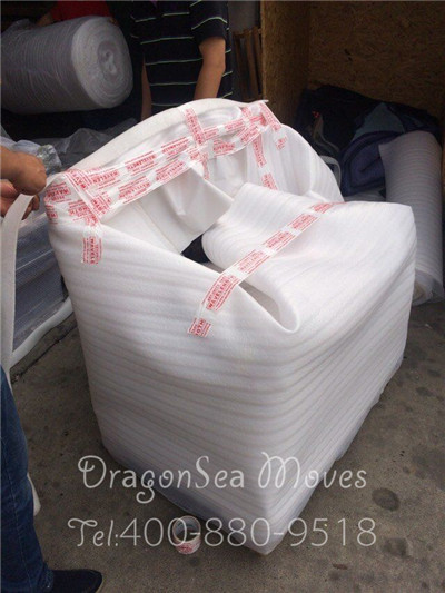 使用珍珠棉进行整体包裹,家具边角处使用加厚泡沫护条包边,封箱胶带绑扎牢固