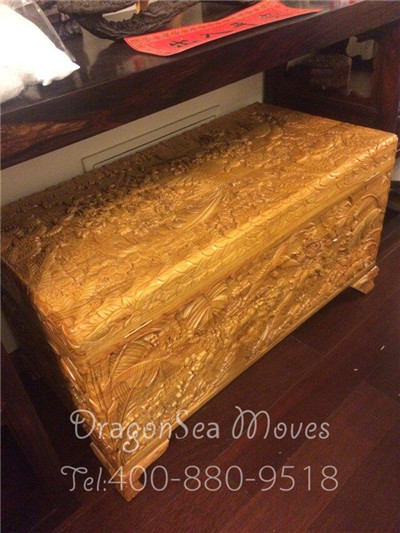 客户家的樟木箱,樟木箱是著名的家具,衣物放在里面时间长了有一种天然的香味,并且防腐防虫,客户的这个樟木箱做工更是精美,整体浮雕工艺,好家具要点赞~~