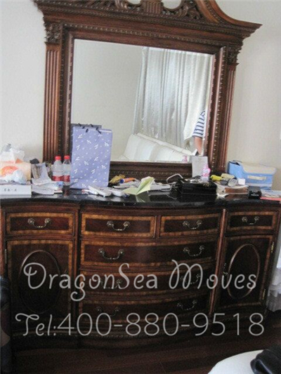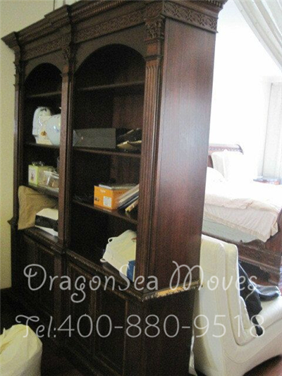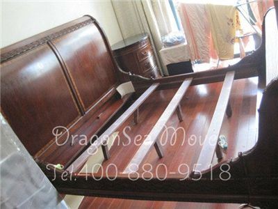 这是9.21日的一个国际搬家订单,客户需要从上海搬到美国洛杉矶的家具中有不少造型都古朴,针对这类家具的海运搬家运输,我们首先要做的是对不同的家具有针对性的进行保护,这个步骤包括了零碎物品的收纳,小型家具的整体包装以及大件组合家具比如床,大型衣柜等等的拆卸及包装作业,经过我们包装师傅的处理,可以保证家具在恶劣的长途海运搬家过程中的安全,下面我们来看看从上海海运搬家到美国洛杉矶是怎么进行的。