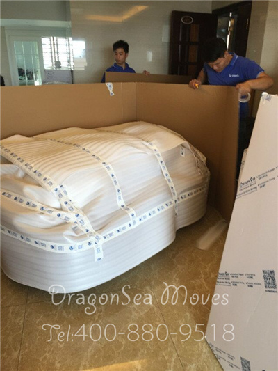 客户的沙发是这次需要包装的最大号家具,下面是我们的师傅包装沙发的作业图,大家可以看看