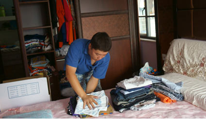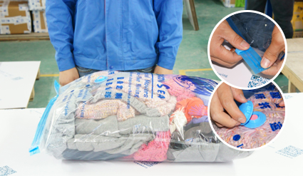 将整理好的物品叠整齐后逐一放入真空袋,要放置平整,确保在抽空时不会部分突起.