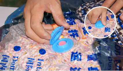 注意:不能有尖刺状物品,以免刺穿真空袋。