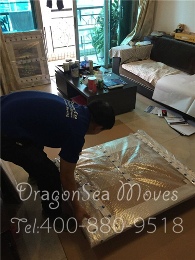 这是15年2月4日从深圳海运搬家到澳大利亚的一个客户,走的是集中托运,说起集中托运这个得跟大家介绍一下国际搬家的几种模式,主要是散货和集装箱整柜两种,集装箱整柜一般都是在海运搬家的客户家附近由公司搬家班子现场装柜封柜,安全性高,而散货都是交给海关监管仓后由监管仓装卸工装柜的,海关监管仓装卸业内都知道,服务态度差,普遍存在暴利操作情况,特别是私人物品比如包装好的家具等由于形状不规则,装卸困难,特别容易受到海关监管仓装卸工的“特殊照顾”。我司为保障客户物品的安全在部分线路推出了集中托运服务,将不同客户海运往同一国家的物品揽收到公司仓库后集中装柜,装卸过程控制在公司内部,大大提高了物品的安全性,并且价格还比散货便宜,比如这个搬家示例就是如此,下面是这个客户的包装案例。