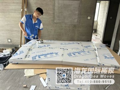 打包顺利完成,感谢海龙国际搬家Bill团队全体成员的合力协作!非常感谢海龙上海作业中心的刘督导和小李师傅的上门打包提货服务!整个上门服务过程中,刘督导和小李师傅都十分敬业,热情友好,对打包物品轻拿轻放;工作效率高,两人配合默契,包装手法娴熟,如行云流水,非常专业。一切都很顺利,对他们的工作我们很满意也很放心,希望之后的运输也顺顺利利!